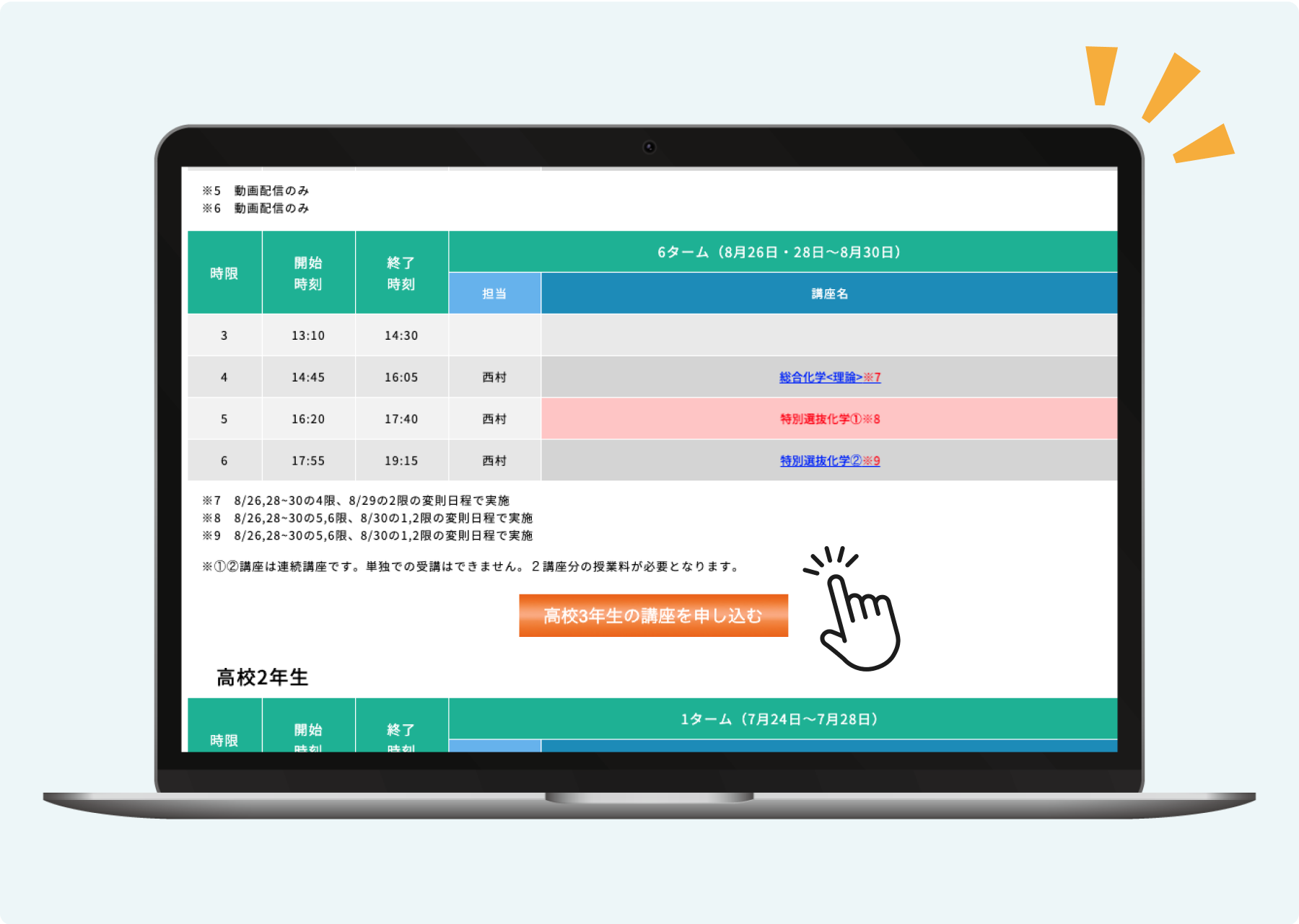 『高校◯年生の講座を申し込む』ボタンを